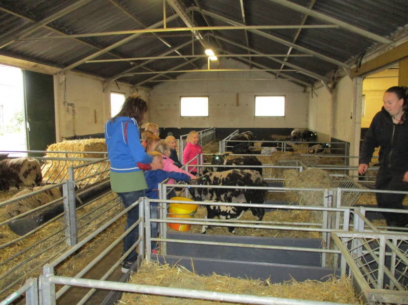De kinderen vonden het voeren van hooi wel heel erg leuk. Sommige kinderen durfden het lammetje aan hun vinger te laten zuigen. Deze leeftijdsgroep 4 t/m 6 jaar ontdekken zoveel, ze krijgen in een korte tijd veel informatie binnen. Lammetjes met oorbellen, navelstrengetjes die nog te zien zijn, bloed bij de moeder schaap enzovoort. Ze hebben veel geleerd over schapen en lammetjes. Hoe voelt schapenvacht en de geur.... Maar ook hoe wild een lammetje bij zijn moeder aan het drinken is.