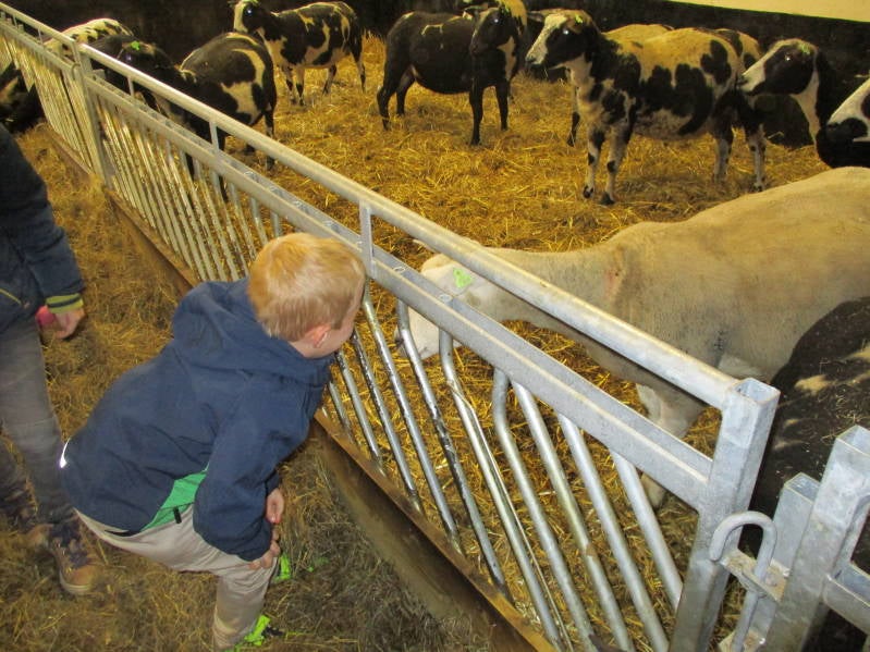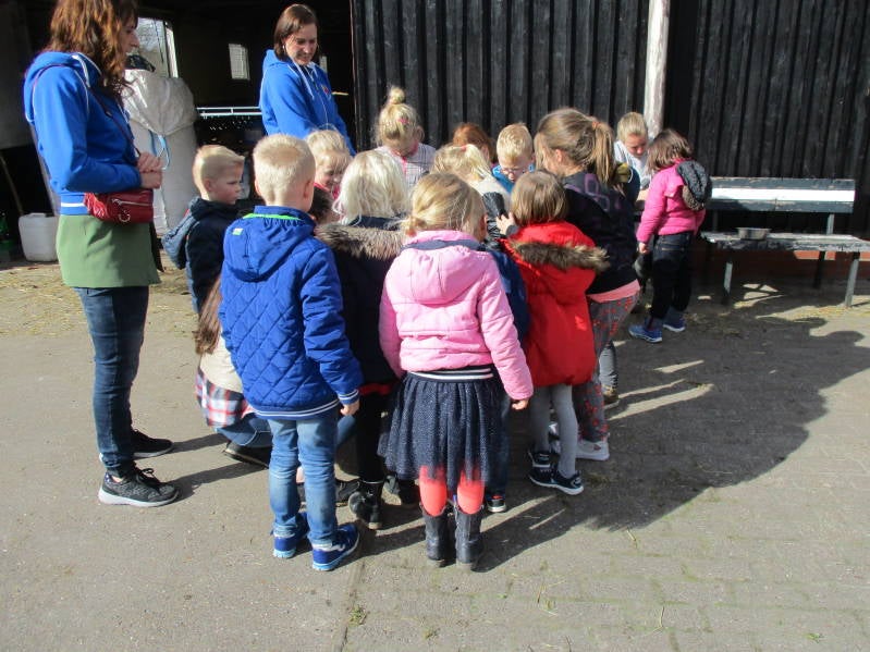 Het rook naar boerderijdieren, een geur die niet iedereen zo lekker vond. Op de boerderij zijn 3 schapenrassen, de Texels schaap is een sterk ras. Het zijn grote dieren en kunnen soms wel 100 kilo wegen. waarschijnlijk de meest spannende schaap voor hun. De kinderen werden In 2 groepen opgesplitst. Zo kwam iedereen wat meer tot zijn recht, want spannend dat vonden ze wel.