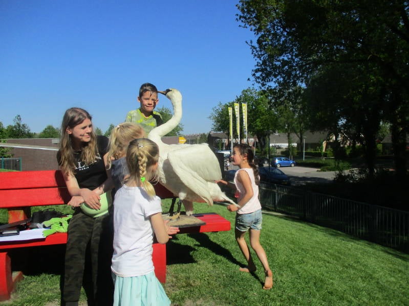 Weten jullie waarom zwanen lopen met een waggelende gang? Nou de kinderen op de BSO nu wel. De poten van een zwaan staan ver uit elkaar en ver naar achteren. Dat maakt het lopen op het land moeilijk.