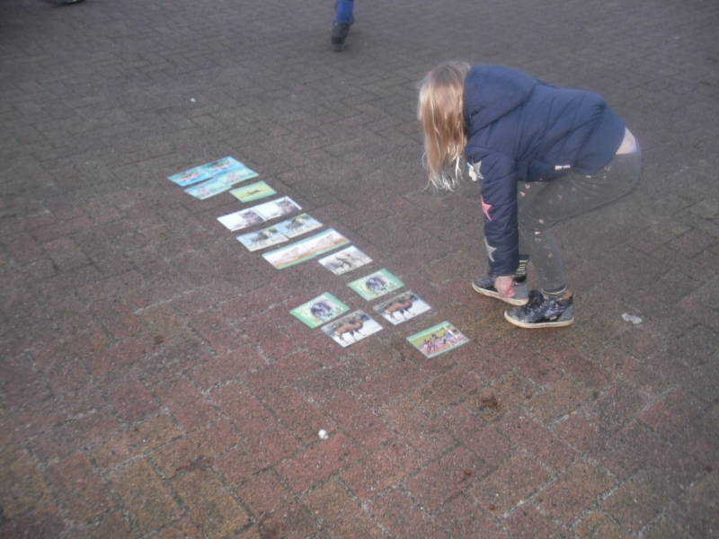 Buiten waren dierenkaarten verstopt, de kinderen mochten deze opzoeken voor het spel. Het spel was wie is het snelste dier?