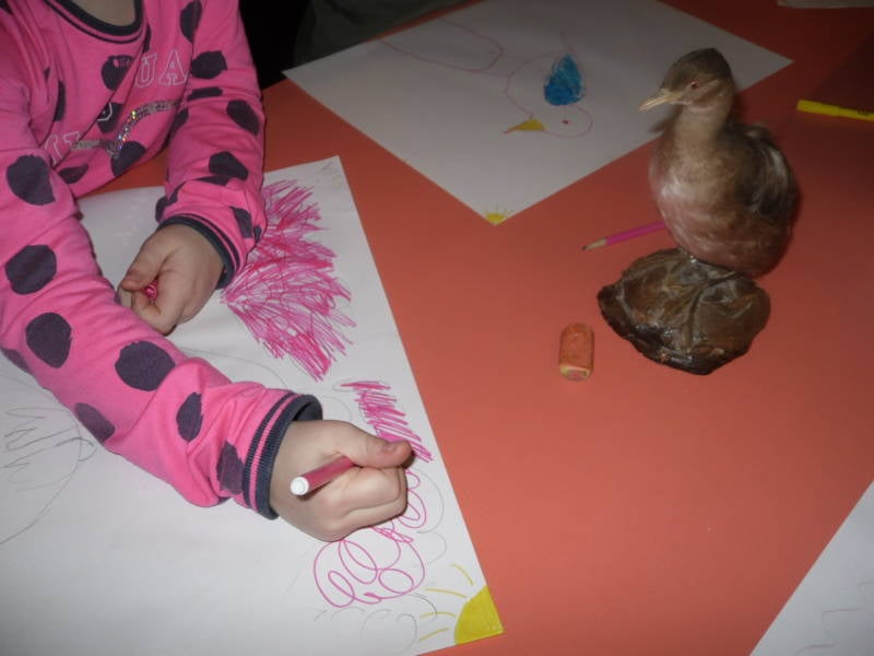 Het Nonnetje, De Kemphaan, de Kneu, Dodaar, Draaihals en de Goudplevier. Deze dieren les was best wel bijzonder. De kinderen mochten voelen en natekenen. Goed letten op de details dus.