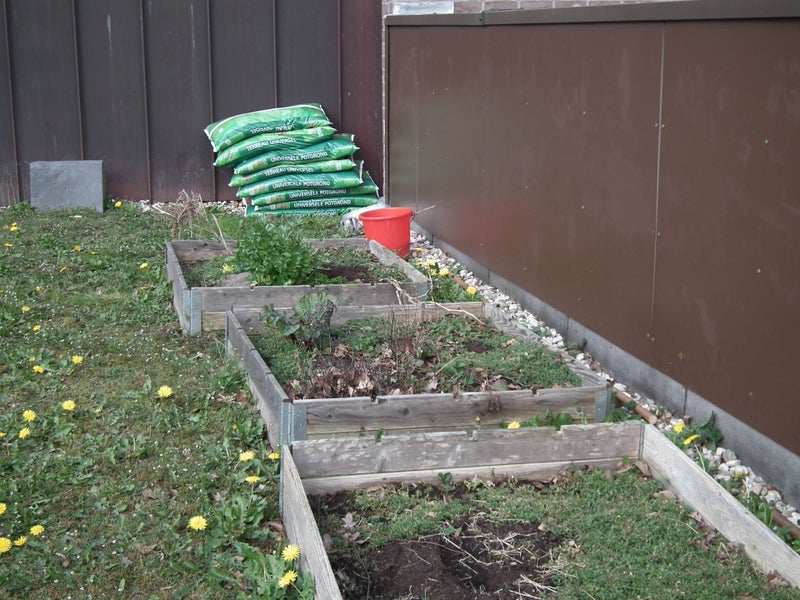 De bloembakken staan vol met planten. Ik ben heel benieuwd wat voor bloemen er straks komen.