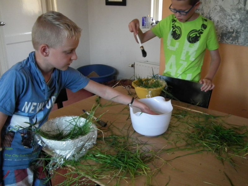 Vogelnesten vertonen een enorme variatie, laat staan alle nesten van andere dieren. We hebben een aantal vogelnesten bekeken en aangeraakt. Zo had ik ook een wespen- als een veldmuisnest. Knap hoor hoe dieren een nest maken. Vol bewondering bekeken wij naar het nest van de wesp. Na wat gezoek in de boeken over hoe de vogels eruit zagen, gingen ze zelf aan de slag met het maken van een vogelnestje. Buiten zocht ze eerst natuurlijke materialen als grassen en pollen.