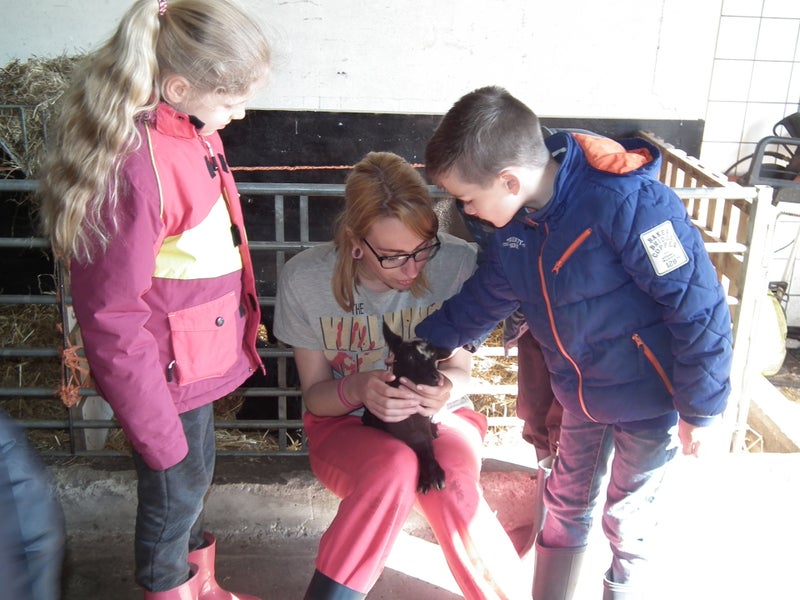Wij hebben heel wat lammeren mogen bewonderen. Van 3 verschillende rassen. Om de hygiëne startten we met handen wassen. De schapen en lammeren staan in groepjes bij elkaar. Twee uren terug waren er net 2 lammetjes geboren. Dat ziet er eerst niet zo fris uit. De navelstreng was nog heel goed te zien en op diverse plekken lag een beetje bloed. Dit is wel natuur. De meisjes van de opleiding Dierenverzorging deden het heel leuk. Genoeg gezien en gehoord was het de hoogste tijd om uit te rennen. In en om de boerderij kun je leuk om struinen. Een leuke dierenles om op terug te zien.