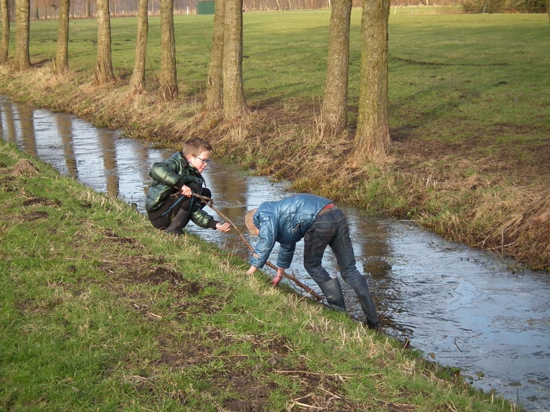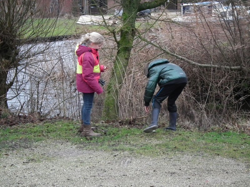 Met de kinderen zijn we naar het Nienoordse bos geweest. Er loopt een sloot dwars door het bos dat verbinding heeft met het Leekstermeer. Op verschillende plekken hebben de kids onderzoekjes gedaan naar waterdieren en leefomgeving van planten.