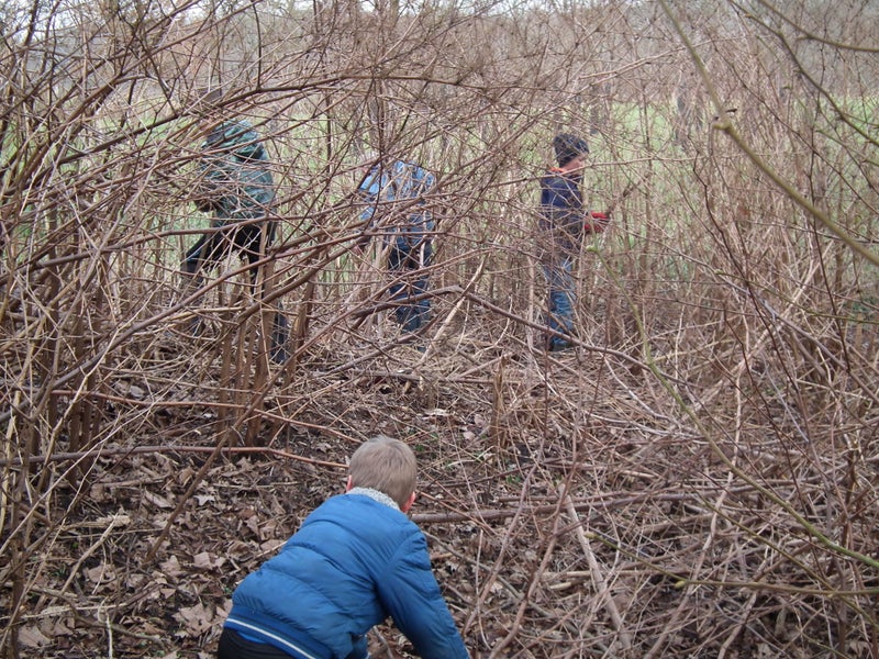Dat hebben wij gedaan. Zeer zwaar met rode wangen gingen de stoere kinderen weer naar huis. Voldaan gevoel nu hopen dat de wilde bij zijn eitjes erin gaat leggen.