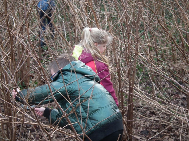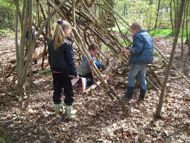 Eindelijk is het mooi weer, een aantal weken waren de lessen binnen. De kinderen hadden er heel veel zin in. We gingen dieren op zoeken op de bult achter het Gemeentehuis Leek. Het was zekers te merken dat het winter was. De dieren lieten zich niet zien. Ondanks dat genoten ze van het buiten spelen in de natuur. Samen van Bamboestengels een brug maken. Dat hebben ze al die tijd gemist, heerlijk buiten spelen. Inderdaad kinderen spelen tegenwoordig niet zo vaak meer buiten.