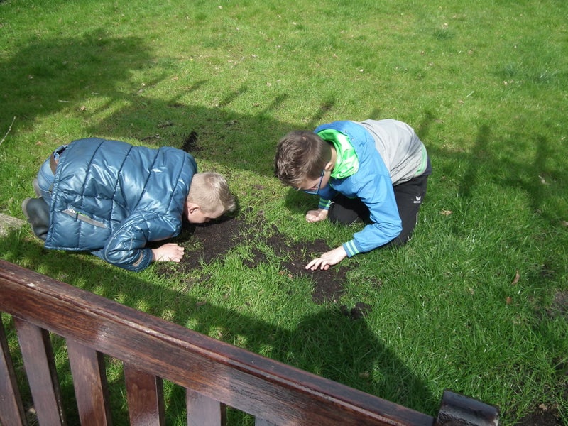 Het kon niet beter, lekker buiten aan de slag. Hoe maak je nou deze zaadbommen?